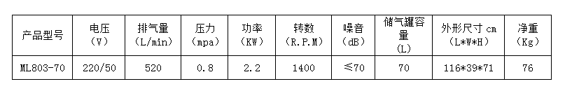 8.本產(chǎn)品為臺冠ML803-70無油空氣壓縮機,嚴禁加油潤滑。