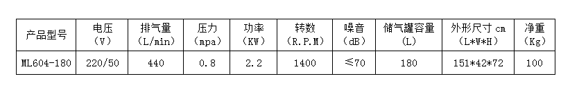 8.本產品為臺冠ML604-180無油空氣壓縮機,嚴禁加油潤滑。
