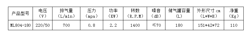 臺(tái)冠無(wú)油空氣壓縮機(jī),簡(jiǎn)稱(chēng)空壓機(jī),是工業(yè)現(xiàn)代化的產(chǎn)物,ML804-180壓縮機(jī)用途非常廣泛,主要表現(xiàn)在用于輪胎充氣、噴漆、潛艇沉浮、沉船打撈、海底石油勘探、氣墊船、食品、制藥工業(yè),利用壓縮空氣攪拌漿液、高壓空氣爆破采煤等等。